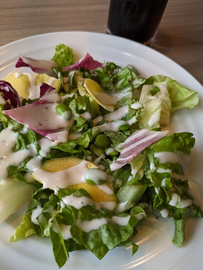 サラダとデザート、ドリンク付き。