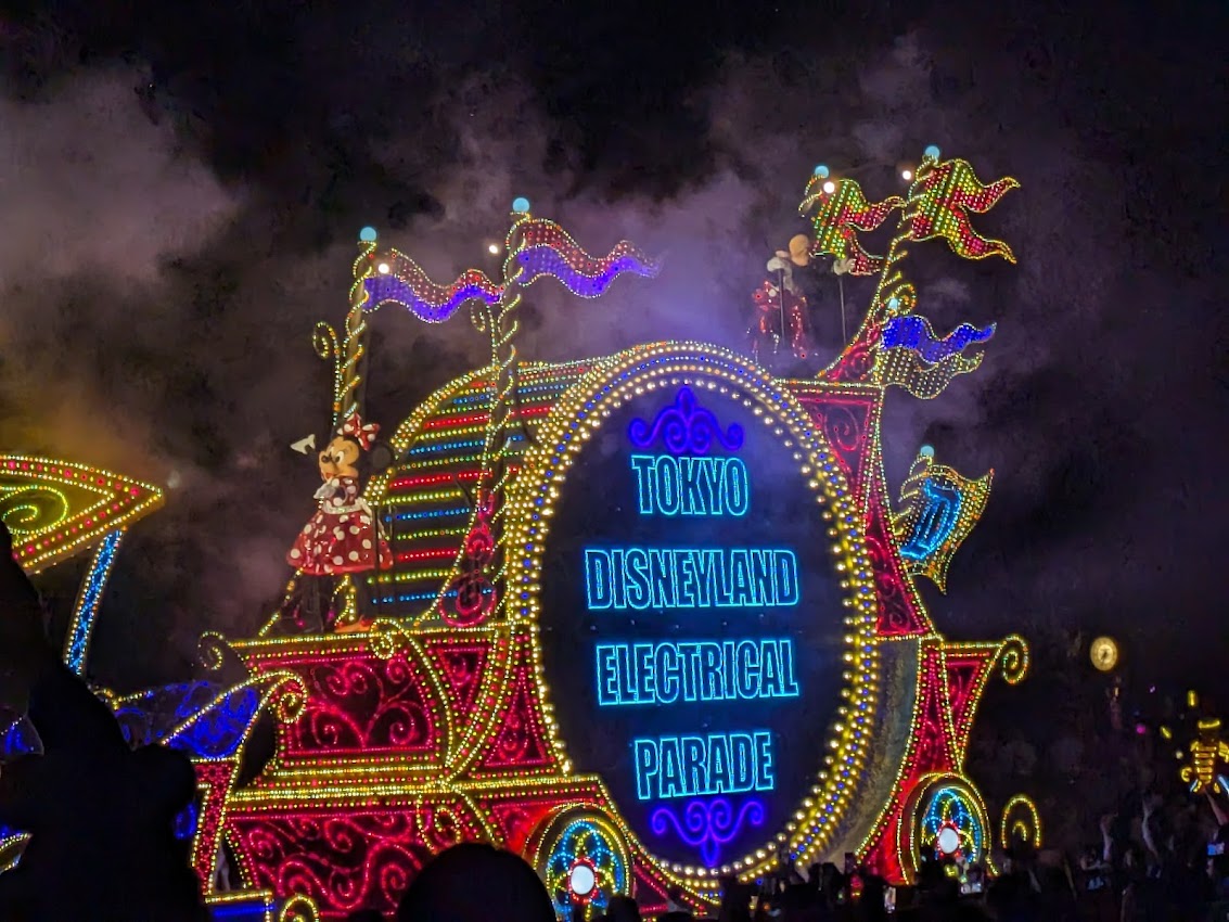 そしてエレクトリカルパレード。この日に帰ってもいいかなと思ったけど、朝から荷物預けるの考えるのも嫌だし、エレクトリカルパレードを見れない時間に帰らないといけないし、帰ったら夜遅くて疲れたままなのも嫌で、もう1泊したけどしてよかった。