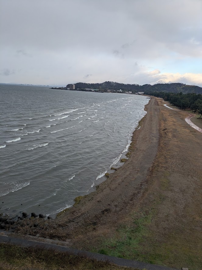 琵琶湖が見えるホテルだけど荒れていて日本海みたいだねーなんて。
