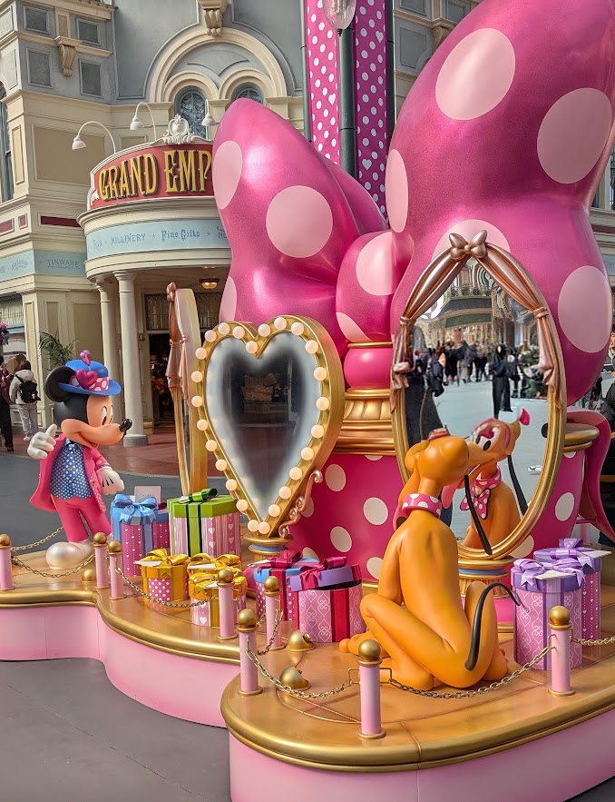 数日後から始まるミニーのデコレーションもあった。鏡越しに撮影とか映り込み激しく難しわ。