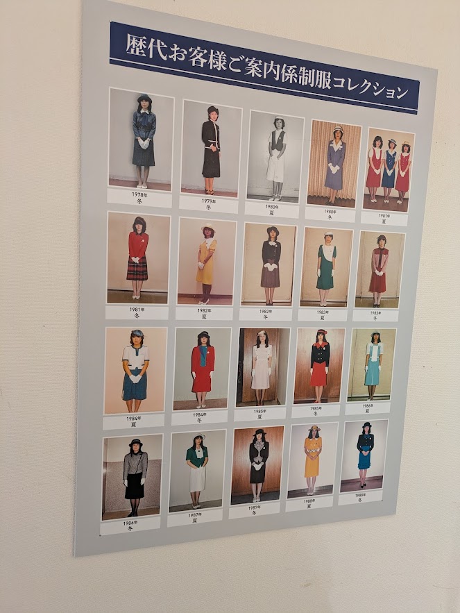 名鉄の制服。子供の頃エレベーターガールがいたのははっきり覚えているけど制服や歴代紙袋みても昔のものはあまり記憶なく。