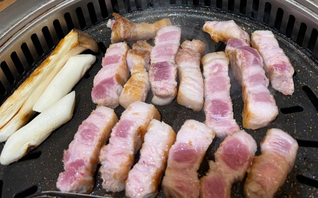 サムギョプサルとのことだけど、変わった焼き方ですごくおいしそう。