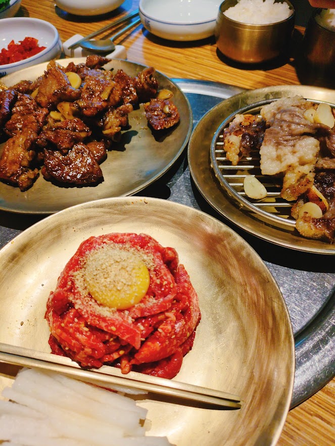 店員さんが全部焼いてくれる。トッポギも食べれておいしかった。