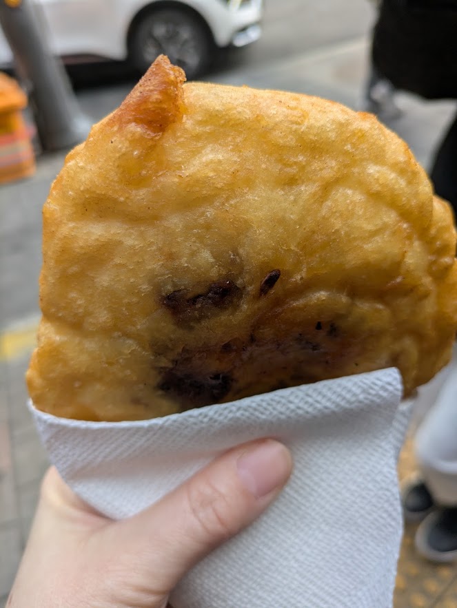 南大門で有名なホットクの屋台へ。ウォンを使い切ってしまっていたので、両替所に行って1000円両替。9200ウォンに。少し並んで購入。